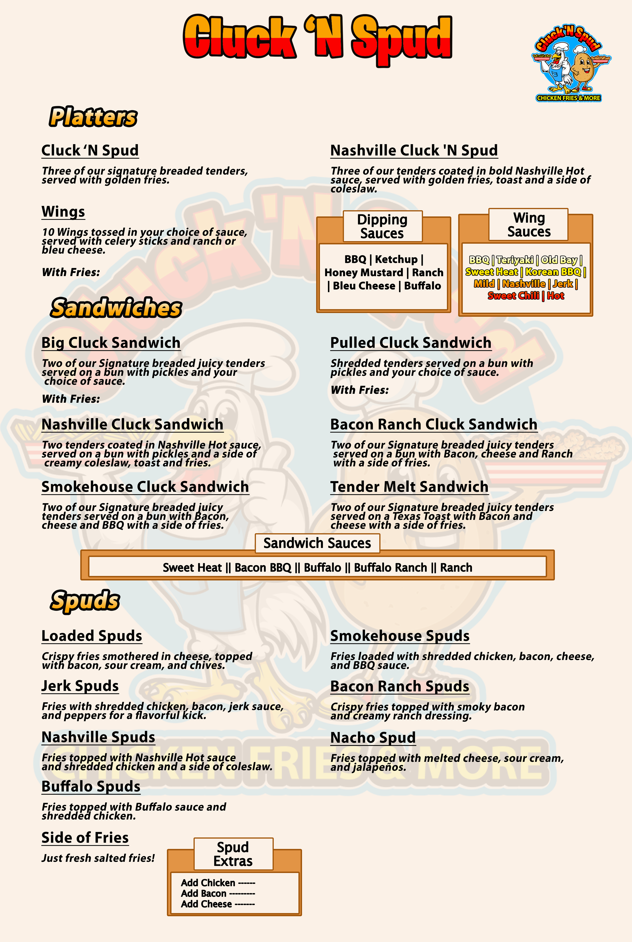 Nashville 🌶️🌶️: A smoky, spicy favorite with a tangy finish, capturing the authentic, savory heat of Nashville Hot chicken.